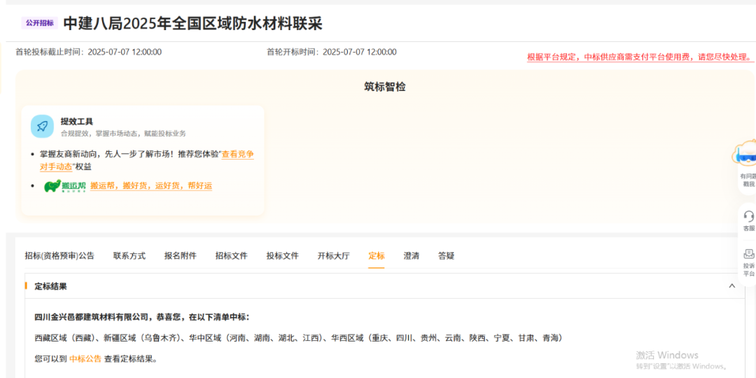 近日,金兴防水在市场拓展中再传捷报,成功中标中建八局2025年全国区域防水材料联采项目。此次合作进一步巩固了金兴防水在建筑防水领域的优势地位,彰显了其产品与服务在大型国家级工程项目中的广泛应用价值和卓越品质。