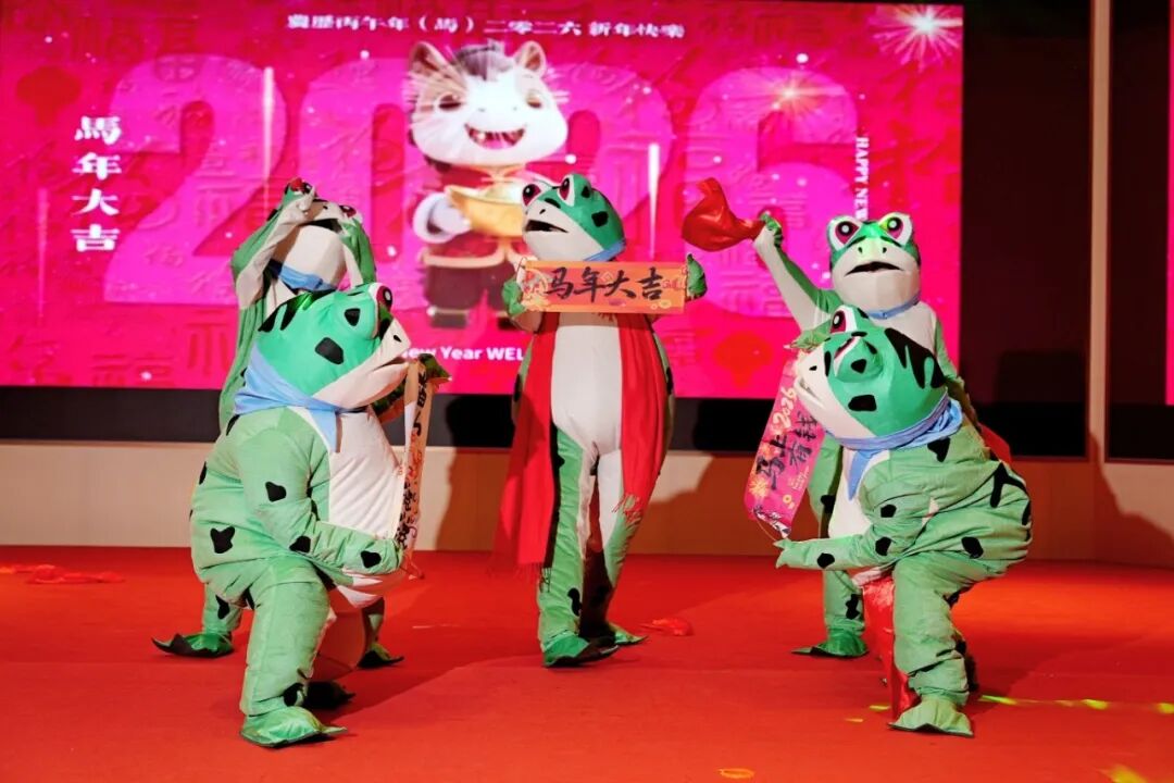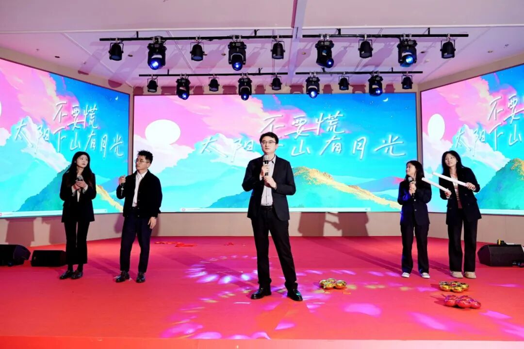 “金马送福” 特别环节温馨登场,生肖属马的员工代表一同登台,以“马”字成语送上新年祝福,一句“金马送福,金兴鸿途!”的口号响彻全场,寓意着金兴人在马年策马扬鞭、共赴鸿途的坚定决心。